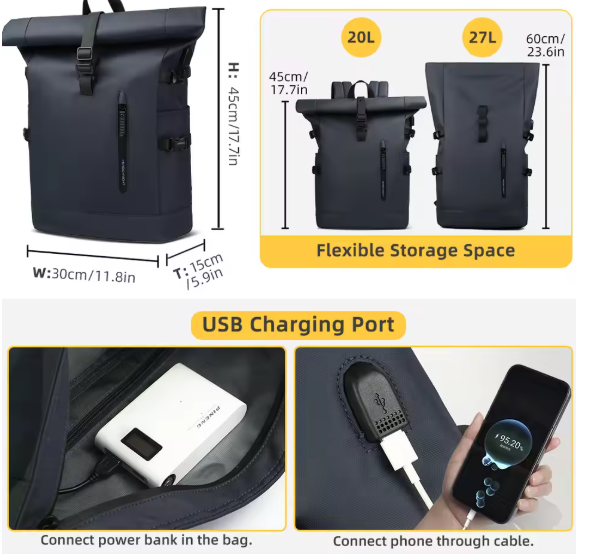 The USB charging port ⚡ keeps your devices powered on the move — perfect for entrepreneurs, travelers, and students who never slow down. Inside, you’ll find multiple smart compartments for your laptop 💻 (up to 15.6"), tablet, phone 📱, power bank 🔋, and accessories — all neatly organized.