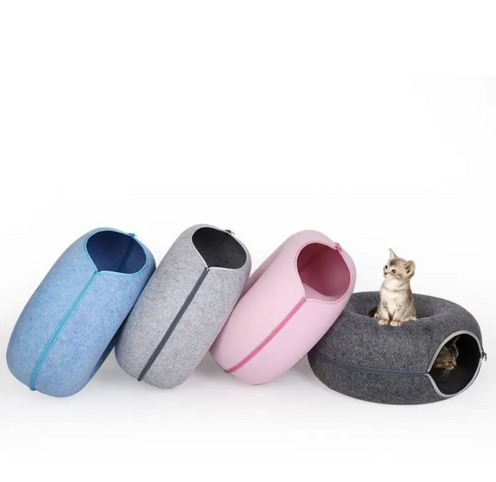 Donut Cat Tunnel Bed Pets House Natural Felt Pet