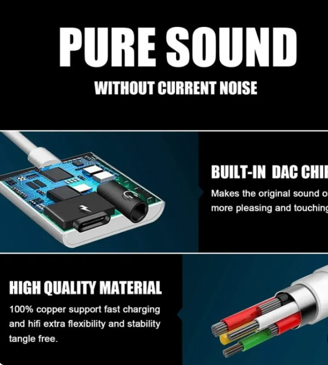 ๐ฅ Hi-Fi Audio Quality โ Powered by a high-performance DAC (Digital-to-Analog Converter) chip, this adapter ensures pure, noise-free sound. Enjoy deeper bass, sharper vocals, and perfectly balanced tones โ exactly how your music was meant to be heard. ๐ต